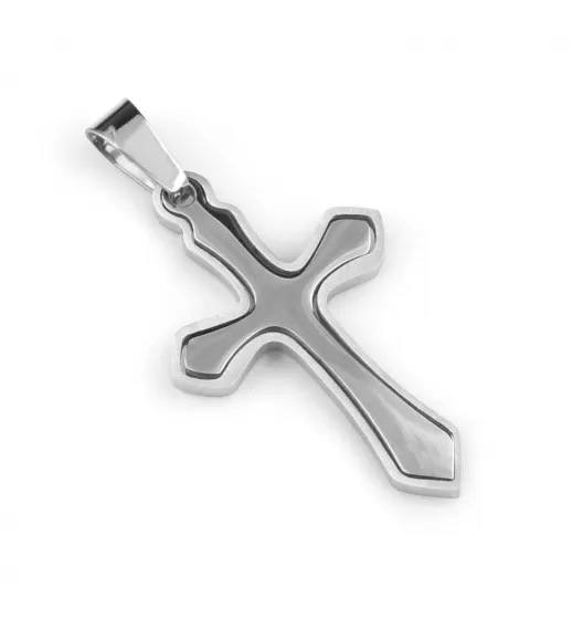 Мужской кулон в форме креста без дополнительного декора. В основе изделия - нержавеющая сталь, великолепно зарекомендовавшая себя в мире современной бижутерии. Она подходит для чувствительной кожи, не вызывает аллергии, не изменяет цвет со временем. Украшение можно носить на шнурке или цепочке толщиной до 4 мм. Оригинальная продукция бренда TATIC.
