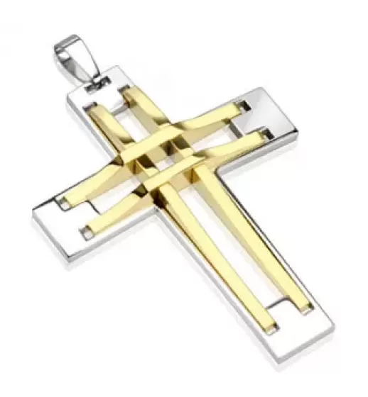 Массивный крест из гипоаллергенной стали 316L оригинальной формы.